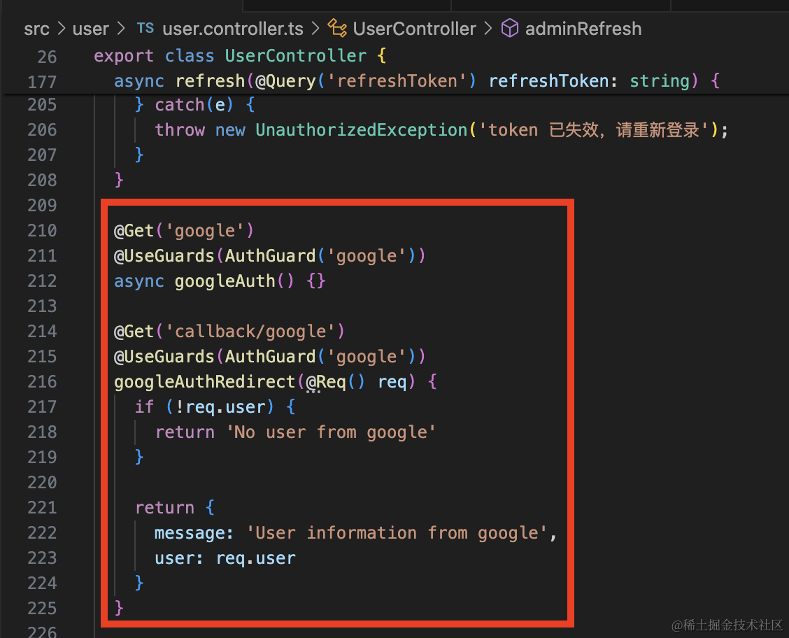 @UseGuards(AuthGuard('google'))