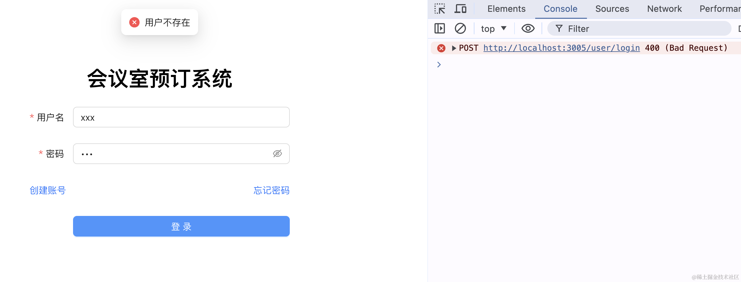 npm run start当用户不存在: