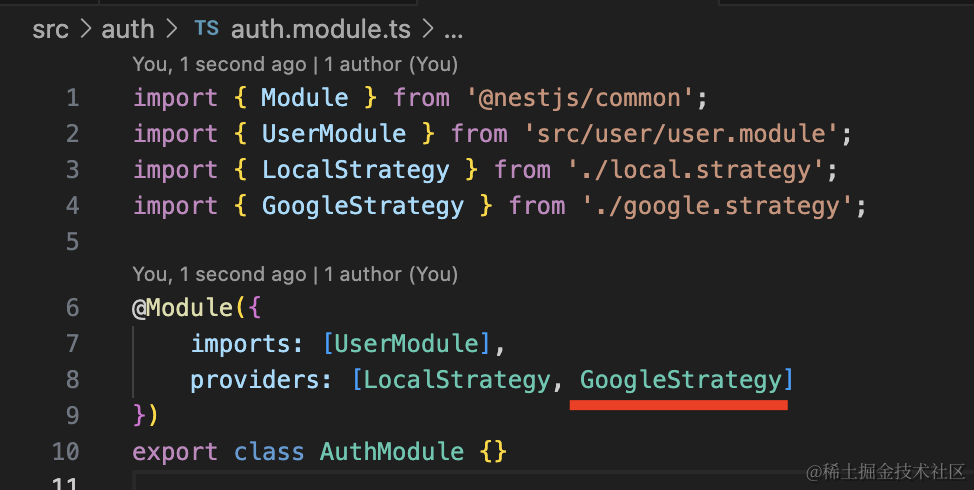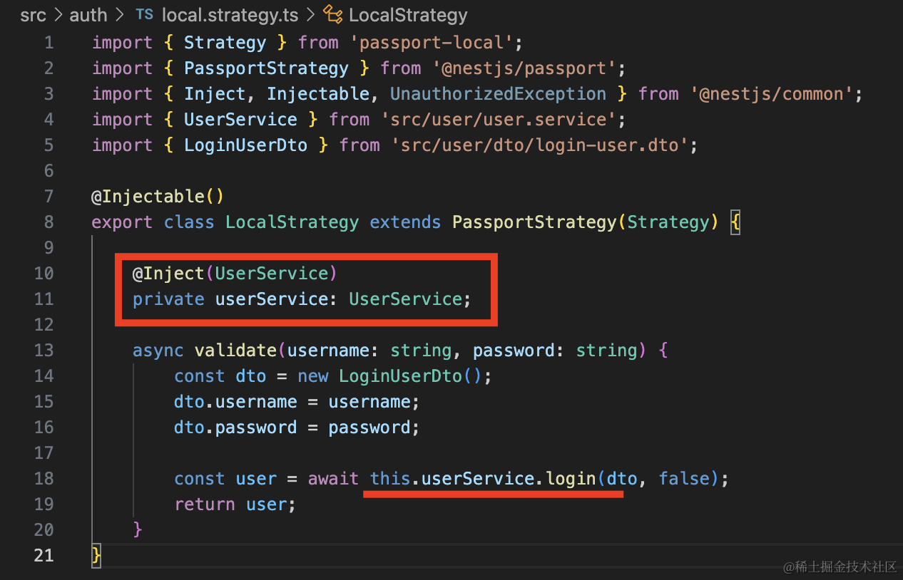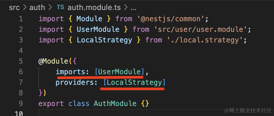 并把 LocalStrategy 声明为 provider。