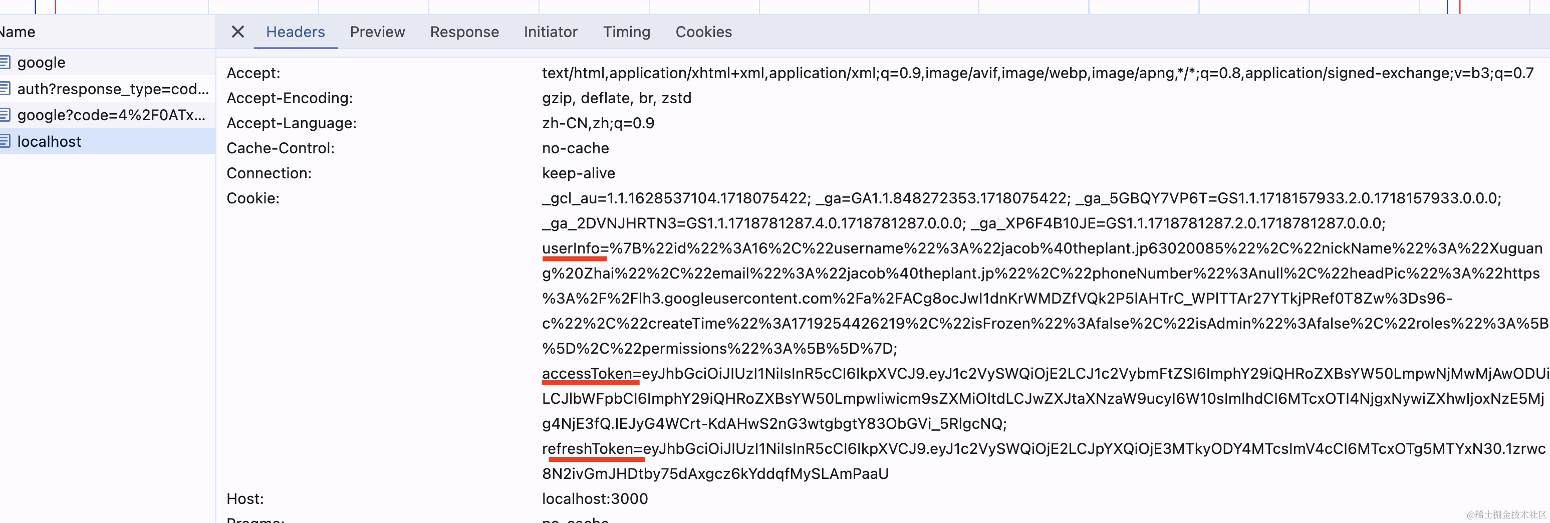 可以看到,google 的用户信息拿到了: