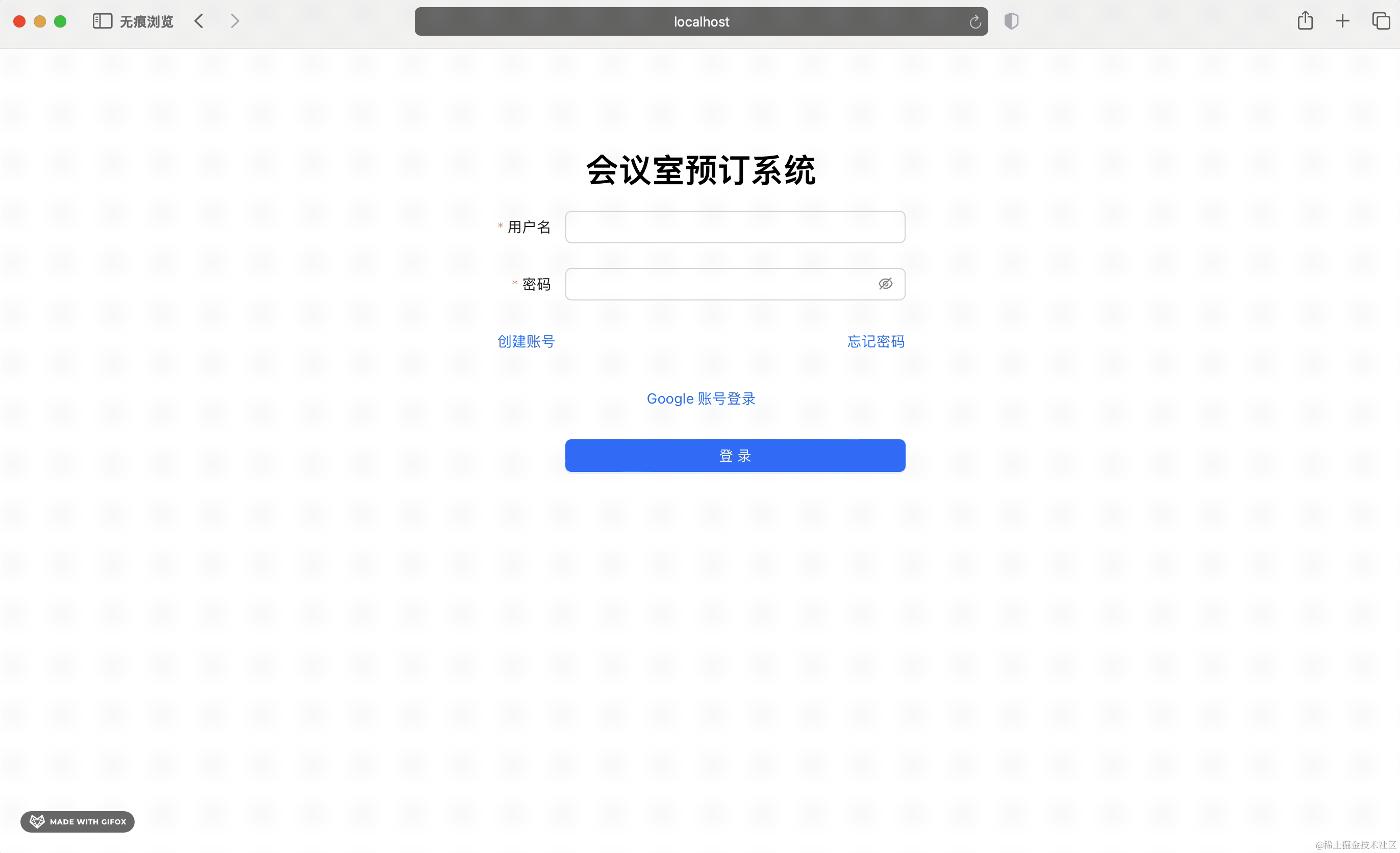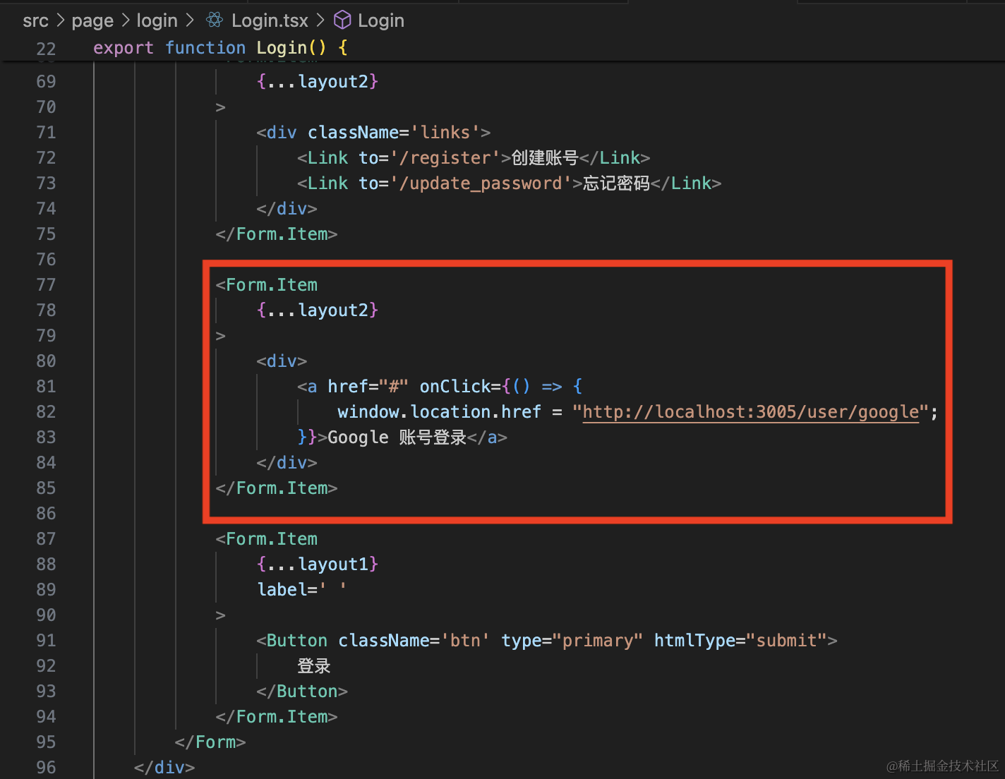 </Form.Item>点击的时候跳转 google 登录页面。