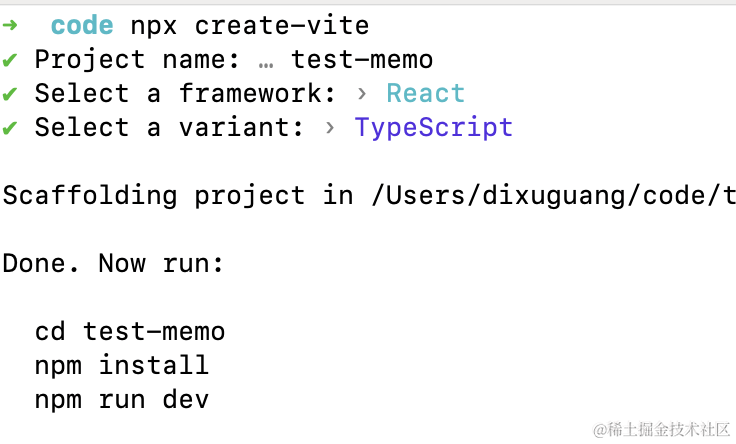 npx create-vite test-memo