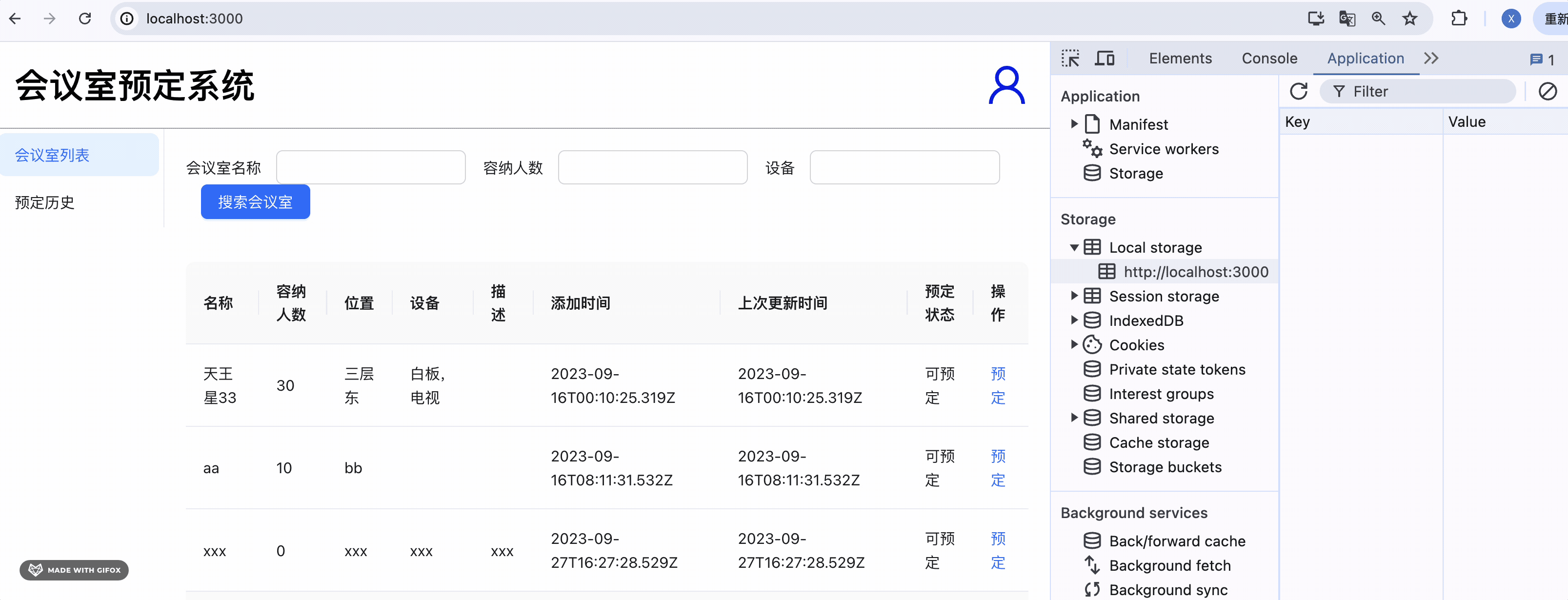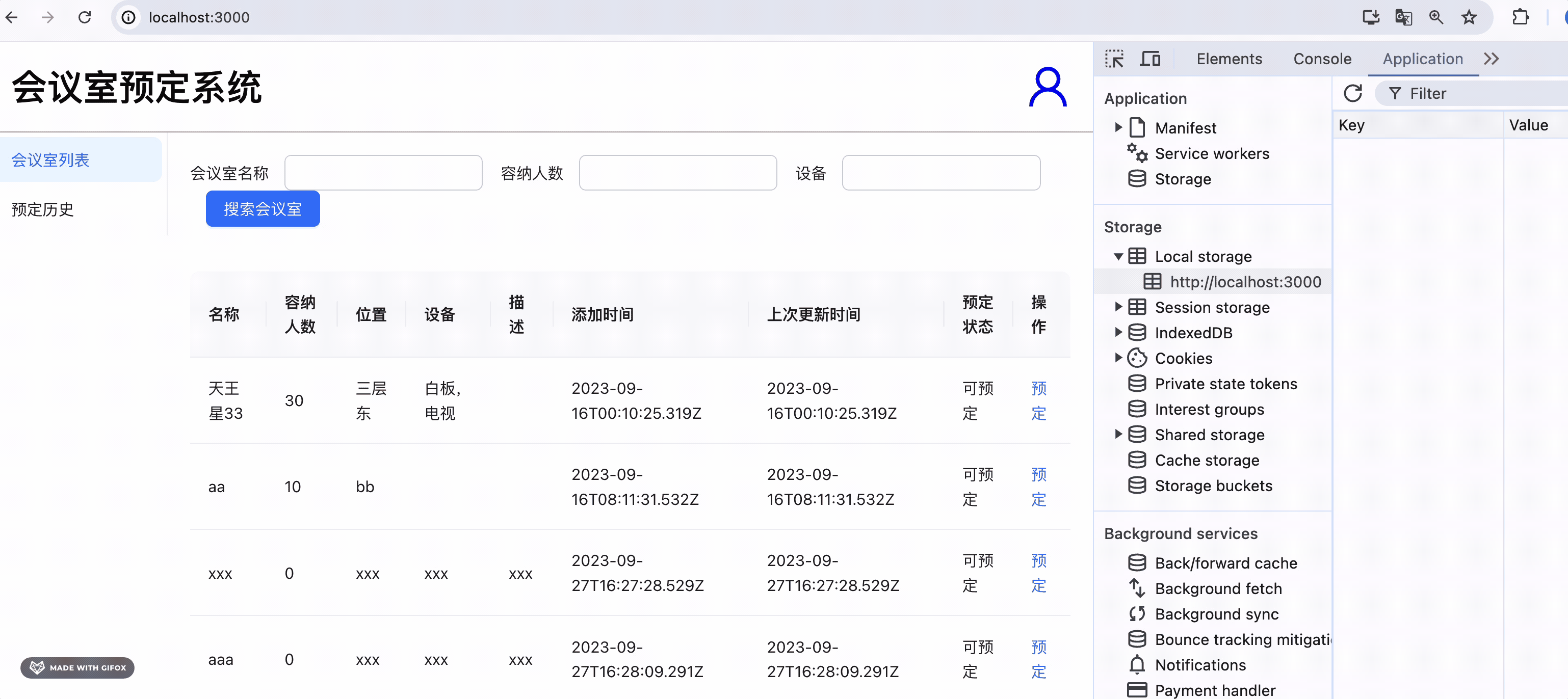 然后进入会议室列表页。