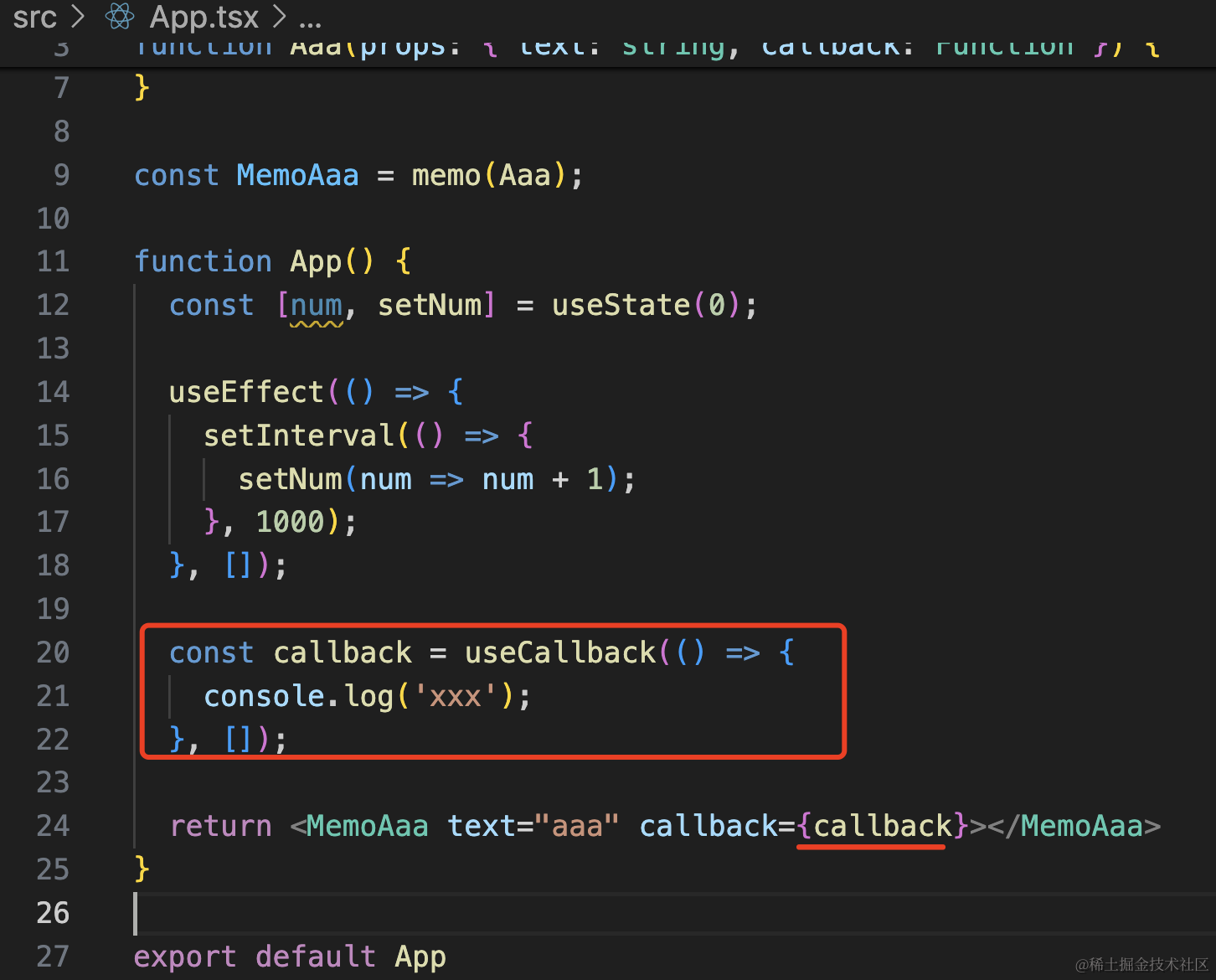 return <MemoAaa text="aaa" callback={() => { console.log('xxx');}}></MemoAaa>