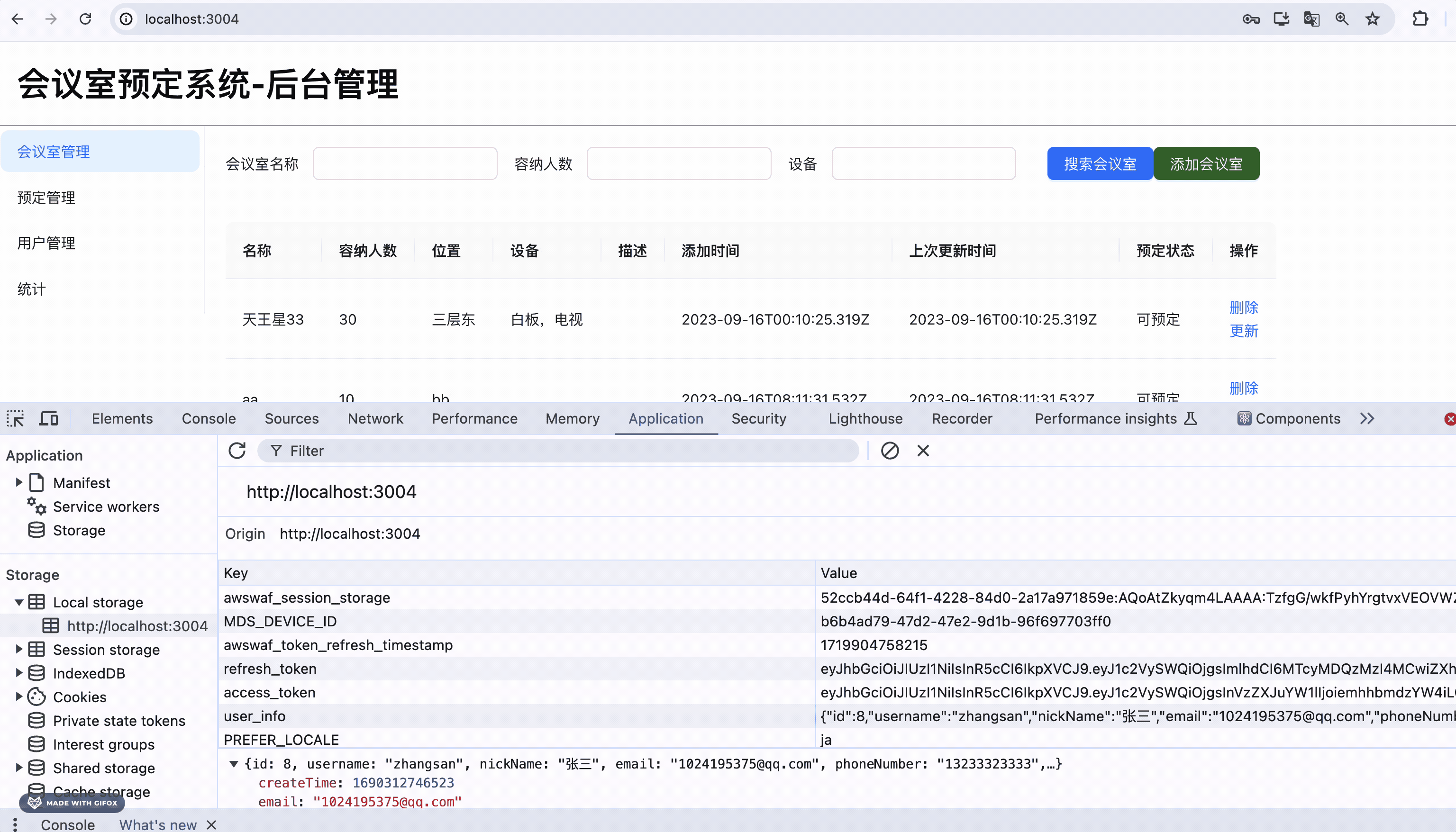 登录之后,我们会在 localStorage 保存 access_token、refresh_token、user_info 的信息: