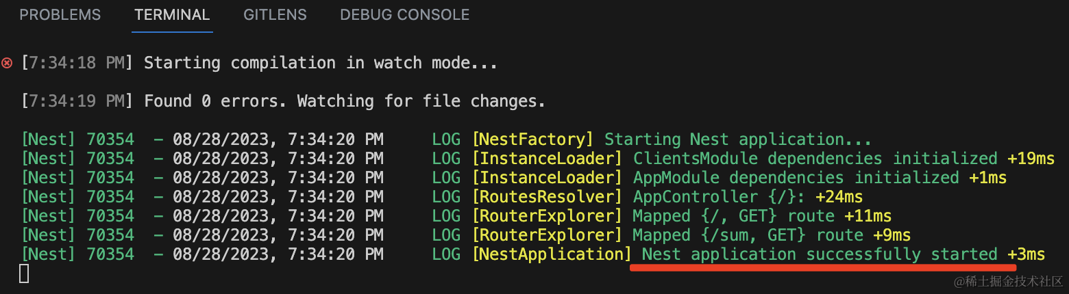 npm run start:dev微服务那边跑起来的提示是这样的: