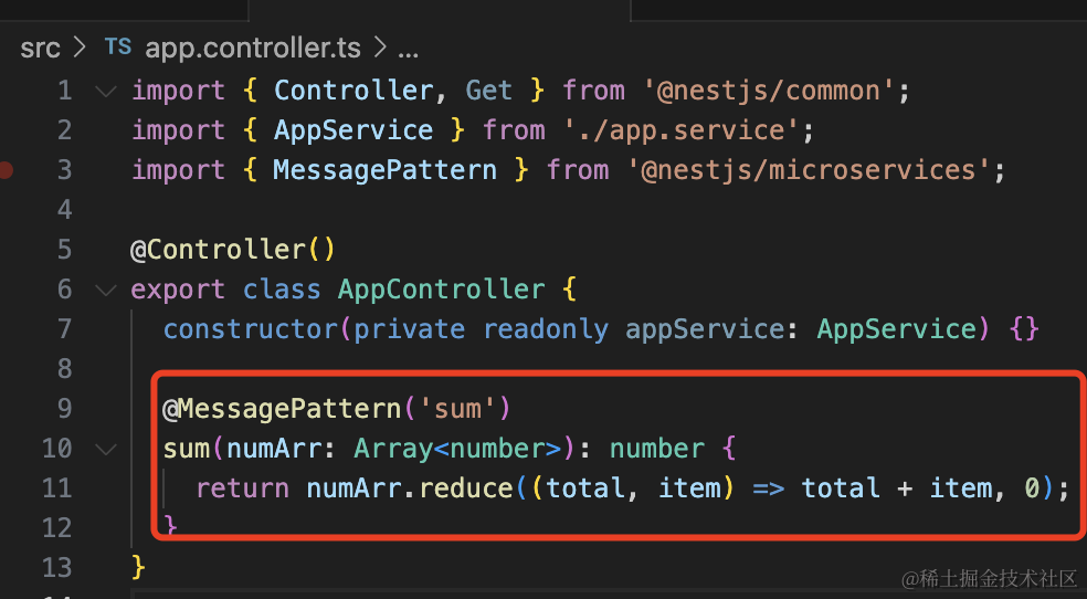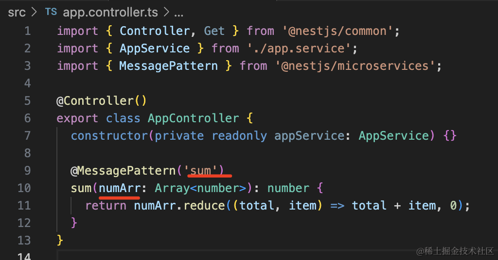 @MessagePattern('sum')