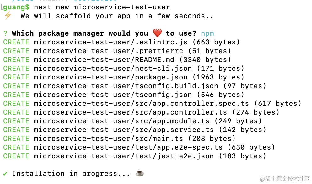 nest new microservice-test-user